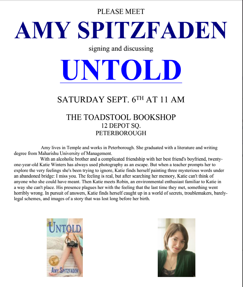 Anyway, I hope this helps. In closing I’d like to say: Come to the Toadstool in Peterborough this Saturday (September 6th) at 11:00 am and hang out with me while I read to you for just the right amount of time in my pre-planned outfit, sign your books with my special pens, and hand you free bookmarks. What could be better?